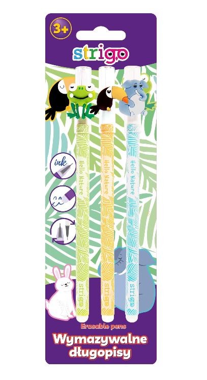Pachetul Blister Strigo Nature (SSC163x3) este alegerea perfectă pentru cei care apreciază estetica inspirată din mediul înconjurător și au nevoie de un instrument de scris fiabil, care să permită corecturi rapide și invizibile. Acest set de trei pixuri îmbină tehnologia modernă a cernelii termosensibile cu un design ergonomic și plăcut.
