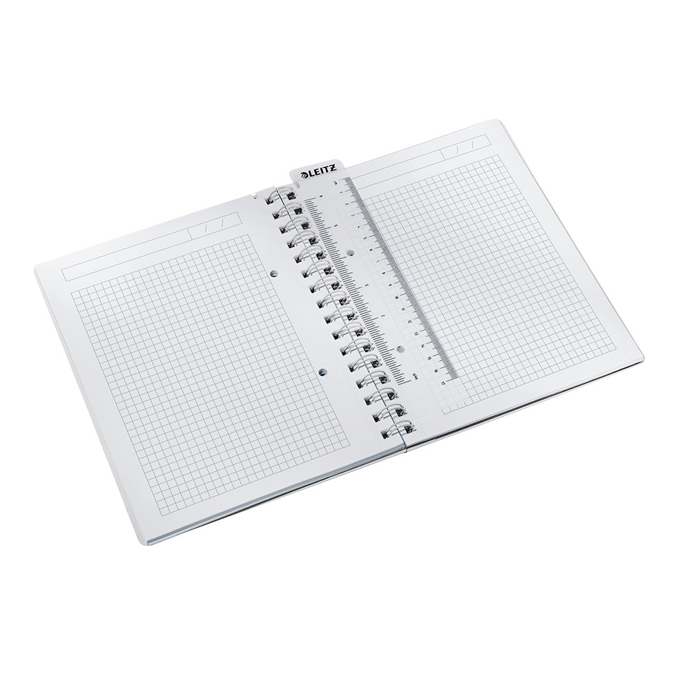 Caiet de birou Leitz WOW Be Mobile. Ideal pentru a lua notite atunci cand esti in miscare. Coperta din polipropilena, 80 de file, hartie 80 g/mp, certificata FSC, 3 separatoare repozitionabile si pagina de sumar, mapa cu 3 clape atasata pe coperta din spate, capacitate 60 de coli.