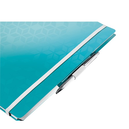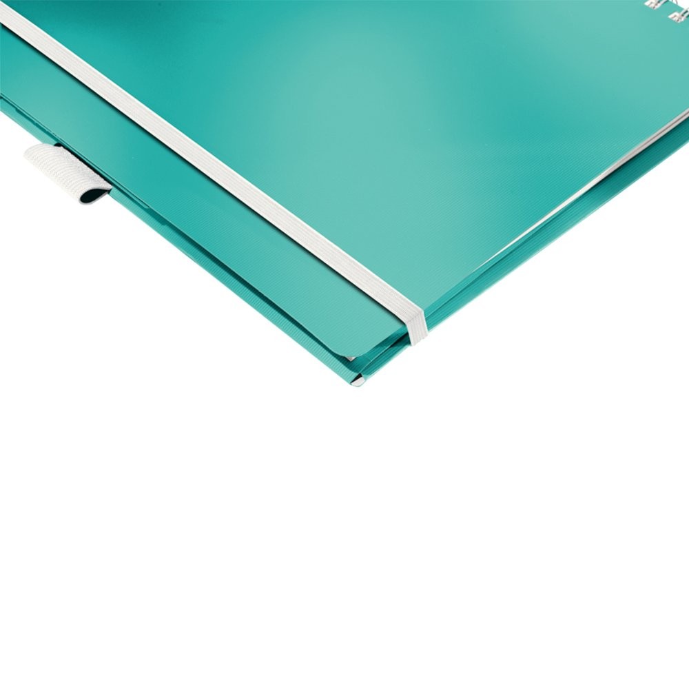 Caiet de birou Leitz WOW Be Mobile. Ideal pentru a lua notite atunci cand esti in miscare. Coperta din polipropilena, 80 de file, hartie 80 g/mp, certificata FSC, 3 separatoare repozitionabile si pagina de sumar, mapa cu 3 clape atasata pe coperta din spate, capacitate 60 de coli.