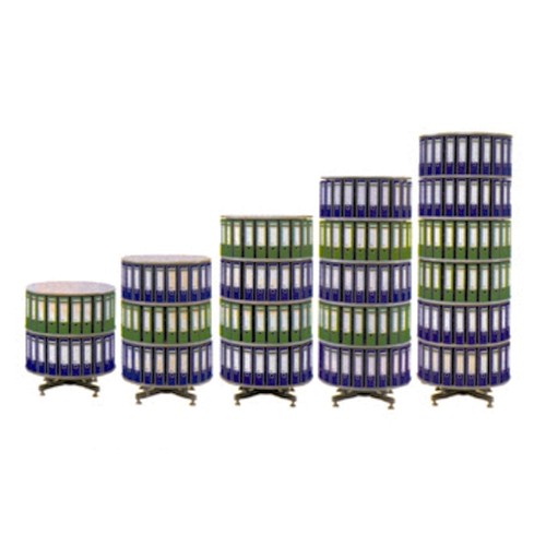 Posibilitate de adaugare de nivele suplimentare. Structura din otel, cu placi realizate din PFL laminat, cu margini de protectie de PVC. Capacitatea maxima a unei etajere este de 24 bibliorafturi. 2 niveluri, margini de protectie din PVC, prinderi metalice.