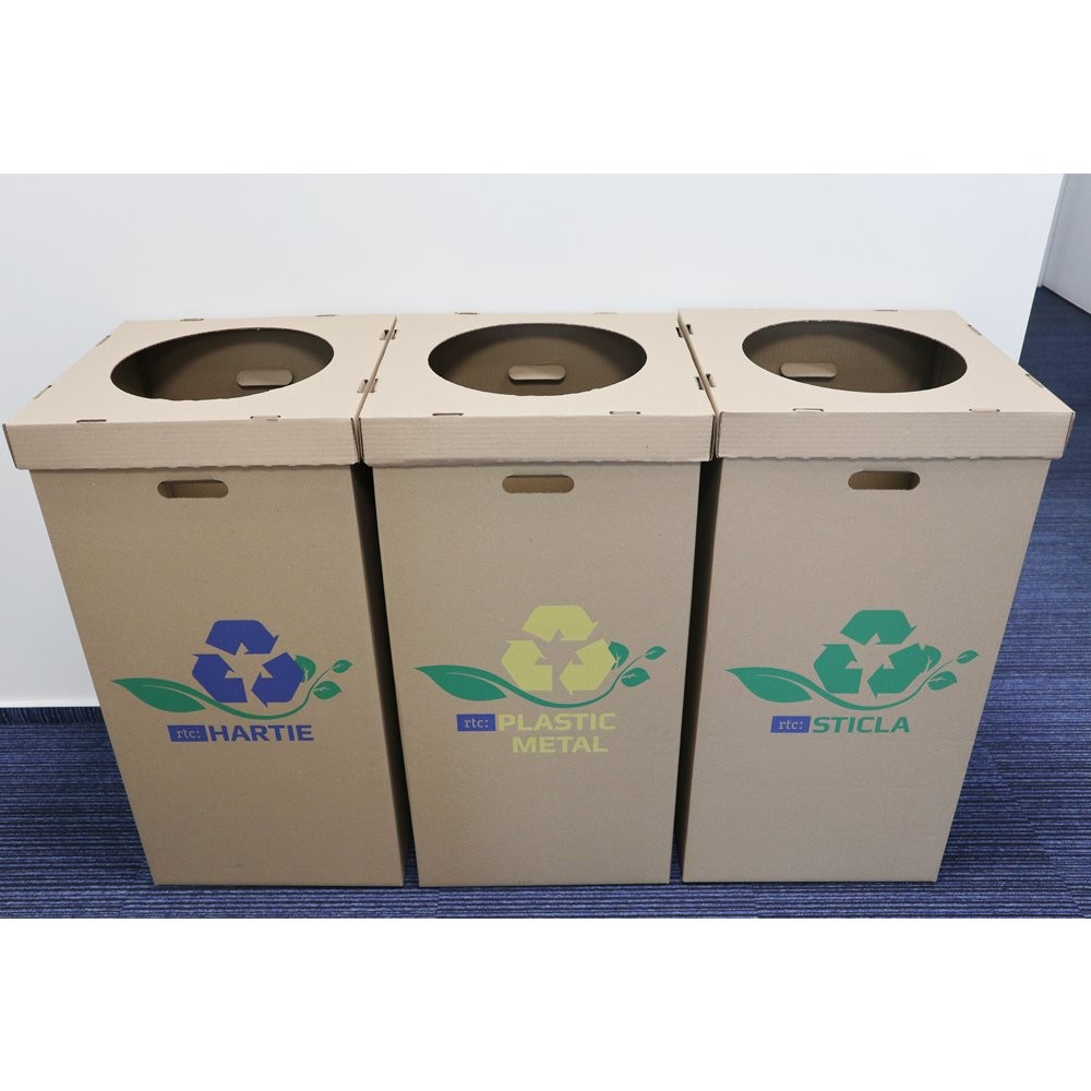 Cosurile de gunoi pentru colectare selectiva sunt fabricate din carton reciclat.