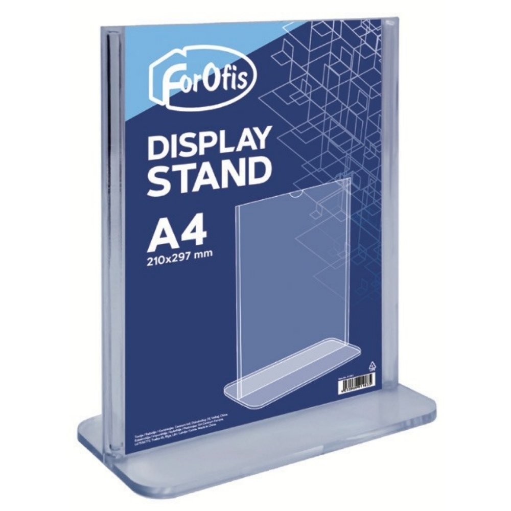 Display de prezentare Forofis, in forma de „T”, orientare verticala (portrait), format A4. Ideal pentru expunerea informatiilor, meniurilor sau ofertelor, avand un design stabil si versatil. Disponibil in dimensiuni A4, A5 si A6.