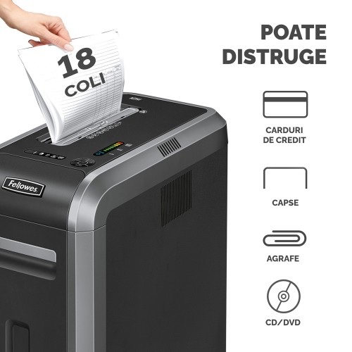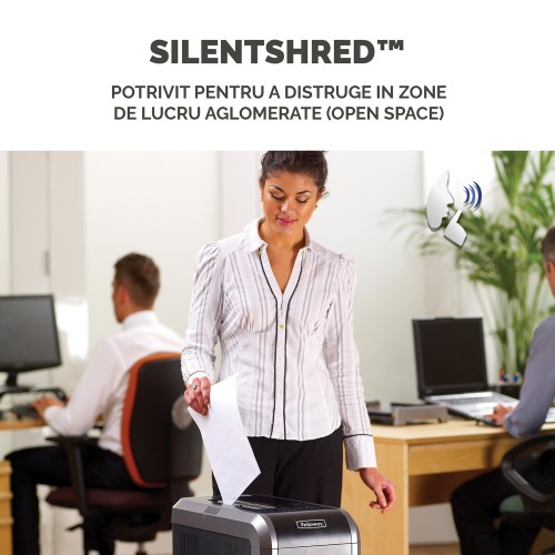 Distrugator de documente automat, destinat utilizarii intensive: functioneaza permanent, este mereu gata sa fie folosit. Nivel de securitate P2 straight cut. Capacitate: 20 coli. Tehnologia SafeSense – senzor electronic ce opreste automat distrugerea, atunci cand mana este in contact cu zona de intrare a hartiei. Tehnologia SilentShred, pentru o functionare silentioasa. Sistem de economisire a energiei. Comutare in modul standby dupa o perioada de inactivitate, reducand astfel consumul de energie.