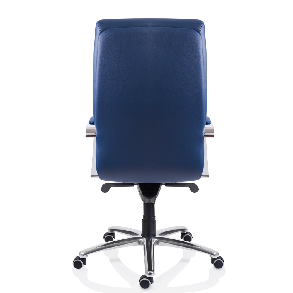 Fotoliu directorial, mecanism multibloc, interior din lemn stratificat tip monoscoică, brațe cromate tapițate, bază ALU șlefuit.