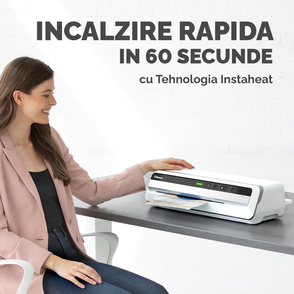 - Gata de laminat in doar 60 de secunde cu tehnologia InstaHeat, lamineaza A4 in doar 17 secunde (viteza maxima de 1400 mm/min)