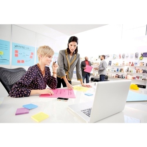 Dimensiuni mari, excelente pentru captarea tuturor ideilor generate in cadrul unei intalniri, in procesul de planificare, braistorming, etc. Adezivul Post-it Super Sticky este de 2 ori mai puternic decat adezivul notitelor adezive Post-it galbene si este ideal pentru aplicatii pe suprafete verticale. Ideile vor ramane mult timp acolo in salile de conferinte, birouri sau spatii de colaborare si ideile se vor transforma in proiecte de succes. Unitate de vanzare: 45 file/bucata, 4 bucati/set.