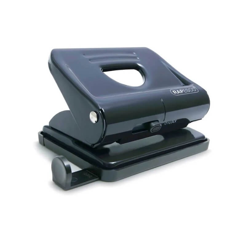 Perforatorul metalic Rapesco 820 are o capacitate de perforare de 22 de coli (80 g/mp) cu 2 perforatii. Produsul prezinta o constructie solida din metal, ghilotine intarite, maner pentru blocare si baza din metal cu tavita din cauciuc pentru confetti, usor de utilizat. Fereastra de personalizare permite identificarea usoara.