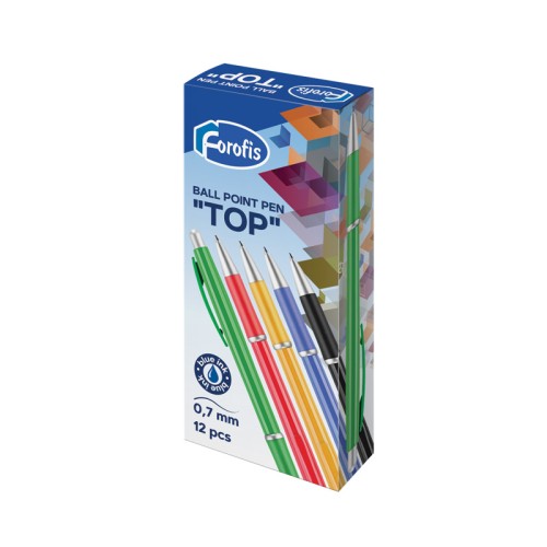 Pixul Forofis Top este un instrument de scris cu mecanism echipat cu o mina albastra si corp disponibil intr-o varietate de culori stralucitoare. Forma ergonomica a corpului asigura o prindere confortabila, iar varful de 0,7 mm permite o scriere fina si moale. Cerneala pe baza de ulei asigura un flux constant si uniform de cerneala. Culorile disponibile includ negru, albastru, galben, rosu si verde. Ideal pentru notite, desene si alte activitati de scris.