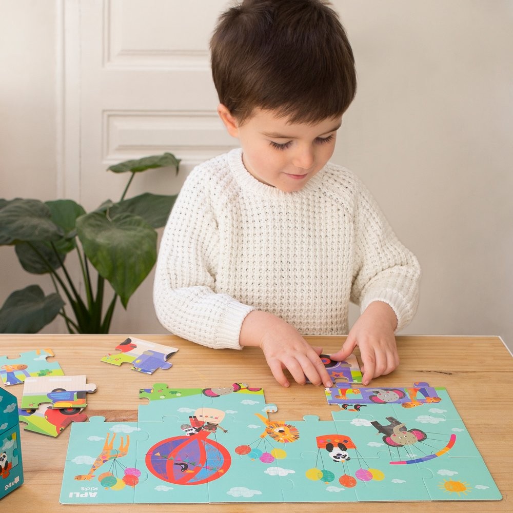 Puzzle original Safari, prezentat intr-o cutie amuzanta in forma de casa. Jocul include 24 de piese de dimensiunea 7 x 7 cm. Dimensiunea puzzle-ului: 42 x 28 cm. Piese usor de manevrat, rezistente si sigure, datorita dimensiunii si colturilor rotunjite. Carton gros de 2 mm cu finisaj stralucitor si indiana pe spate. Puzzle-urile sunt jocuri ideale pentru copii, deoarece in timp ce se distreaza jucandu-se, ii ajuta sa-si imbunatateasca si sa dezvolte multe abilitati: imbunatatirea concentrarii, observarii, memoriei si rezolvarii problemelor, perceptia spatiala, abilitatile motorii fine, recunoasterea formei, coordonarea mana-ochi si abilitatile matematice. In plus, puzzle-urile ii ajuta sa-si imbunatateasca stima de sine si motivatia, atunci c?nd termina jocul cu succes. Un cadou ideal pentru copii! Recomandat copiilor cu varsta de cel putin 3 ani.