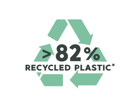 Fabricat din peste 82% plastic reciclat* (excluzând rezervele și componentele non-plastice), ceea ce reprezintă 60% din greutatea totală a produsului fără ambalaj.