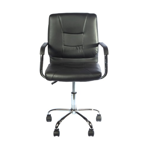 Scaun office de dimensiuni mici,scaunul US31 Era este recomandat atat pentru birouri, cat si pentru acasa, executat cu sezutul si spatarul din PVC, foarte usor de curatat. Baza si manerele sunt din otel cromat. Produsul este prevazut cu cilindru pneumatic de ridicare / coborare.