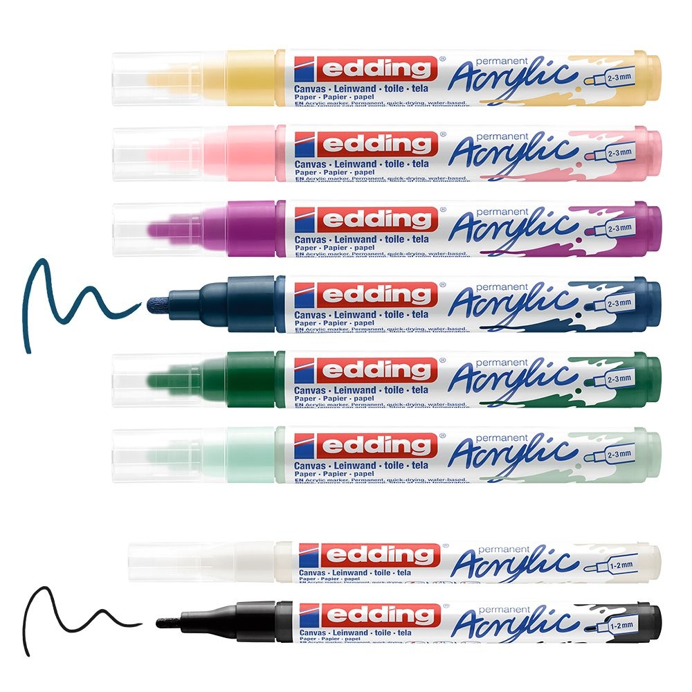 2 markere acrilice fine Edding 5300 varf rotund. pentru contururi si accente.