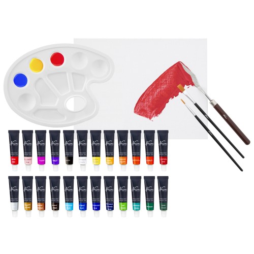 Datorita gamei largi a acestui set de culori acrilice, Nassau Fine Art este un set de 24 de piese, cu caracteristici excelente pentru toata lumea care picteaza o cantitate mare de imagini. Aceste culori acrilice pentru pictura au la baza 100% de rasina acrilica si se usuca rapid. Au o consistenta cremoasa, pigmenti concentrati si de calitate solida. Le puteti amesteca usor si sa creati nuante infinite de alte culori. Dupa diluarea cu apa si aplicarea lor intr-un strat mai subtire, obtin un efect de acuarela. Culorile acrilice Nassau se caracterizeaza cu o mare capacitate de acoperire pe suprafete mari si detalii delicate. In timpul picturii, le ajuta pe pictoriilor sa faca urme precise si accentuate cu pensulele.
