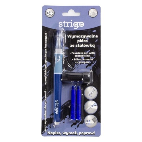 Strigo oferă un stilou pentru copii, care facilitează corectarea eventualelor erori de scriere, inerente școlarilor mici, și ajută părinții care își pregătesc copilul pentru învățarea scrisului de mână.