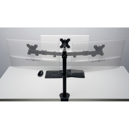 Constructia durabila din otel si aluminiu, necesita mai putin spatiu pe birou pentru a fi atasat, este usor de instalat si nu va deteriora si nu va marca biroul sau masa.